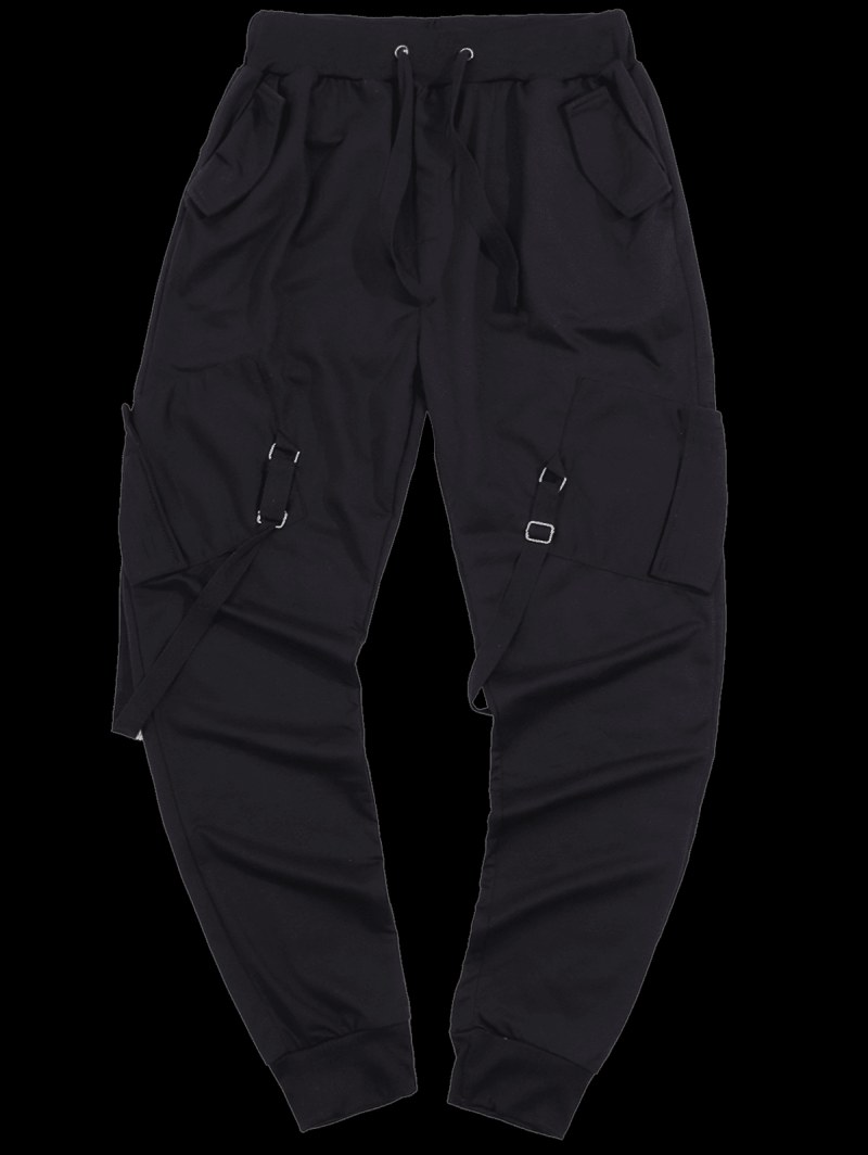 Ribbon Pockets Long Drawstring Sport Cargo Pants