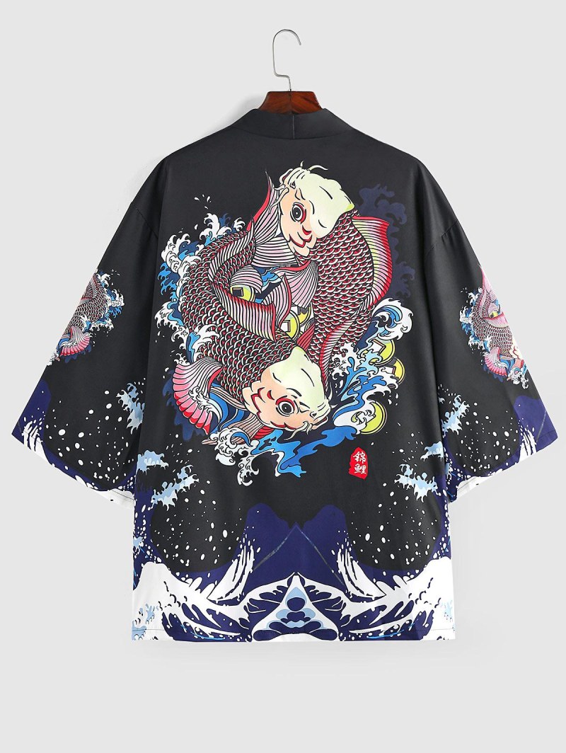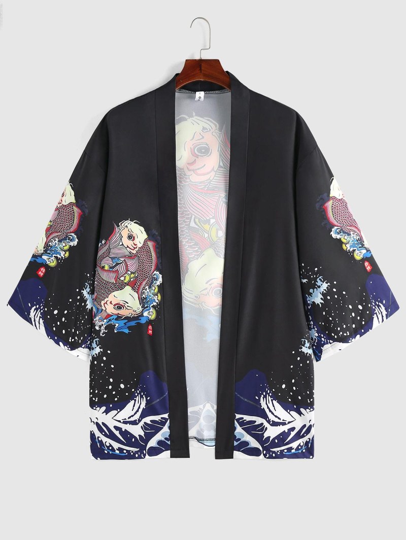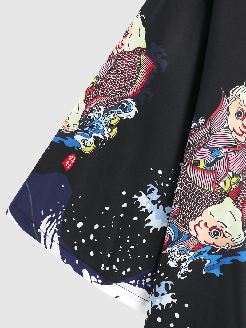 Koi Fish Ocean Waves Print Kimono Cardigan