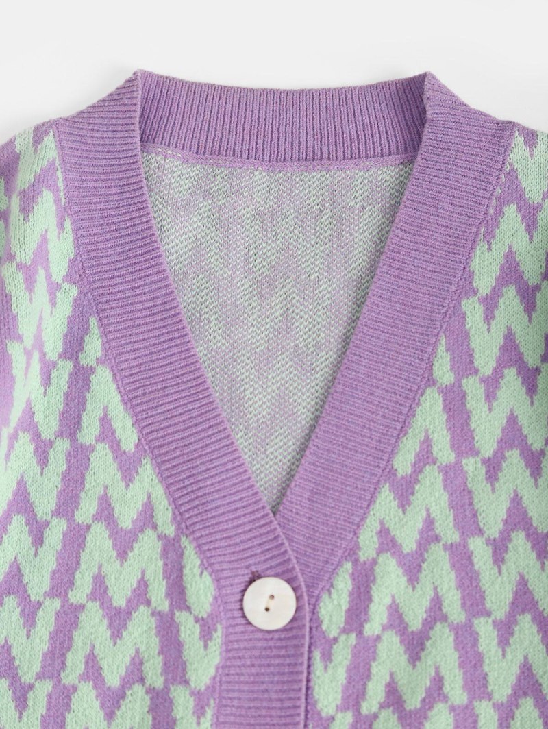 V Neck Button Up Dazzling Graphic Cardigan