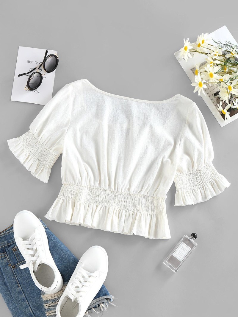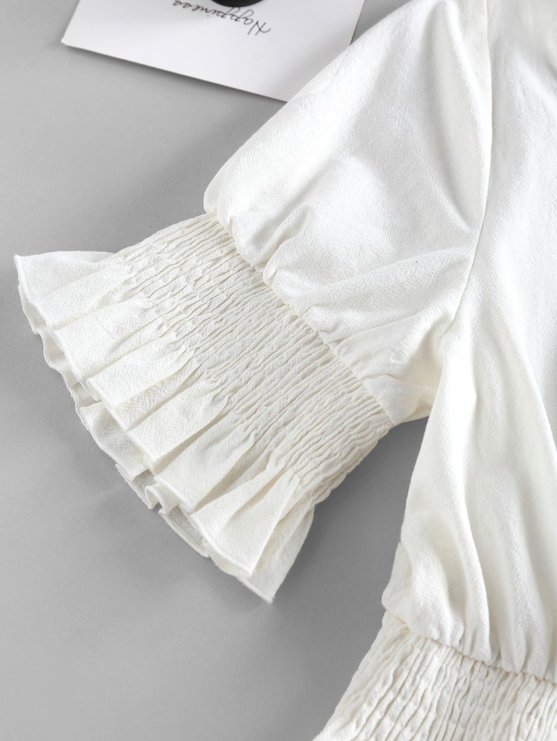 Keyhole Smocked Ruffle Blouse