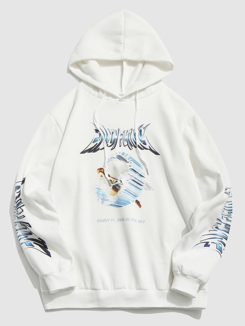 Fleece-lined Enjoying Flying Graphic Hoodie