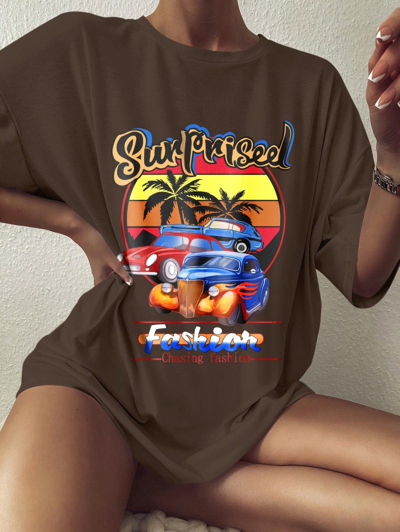 Drop Shoulder Car Graphic Oversized Tunic Tee