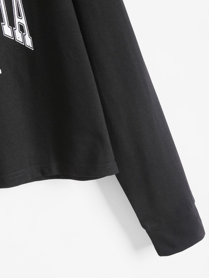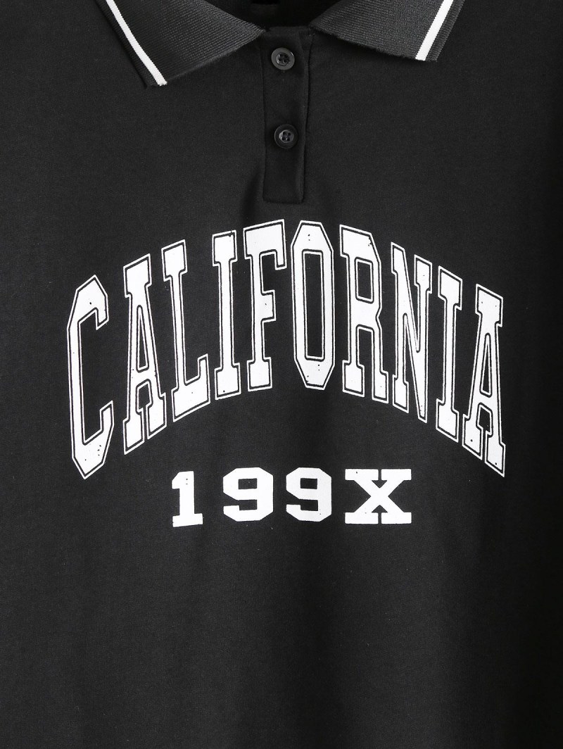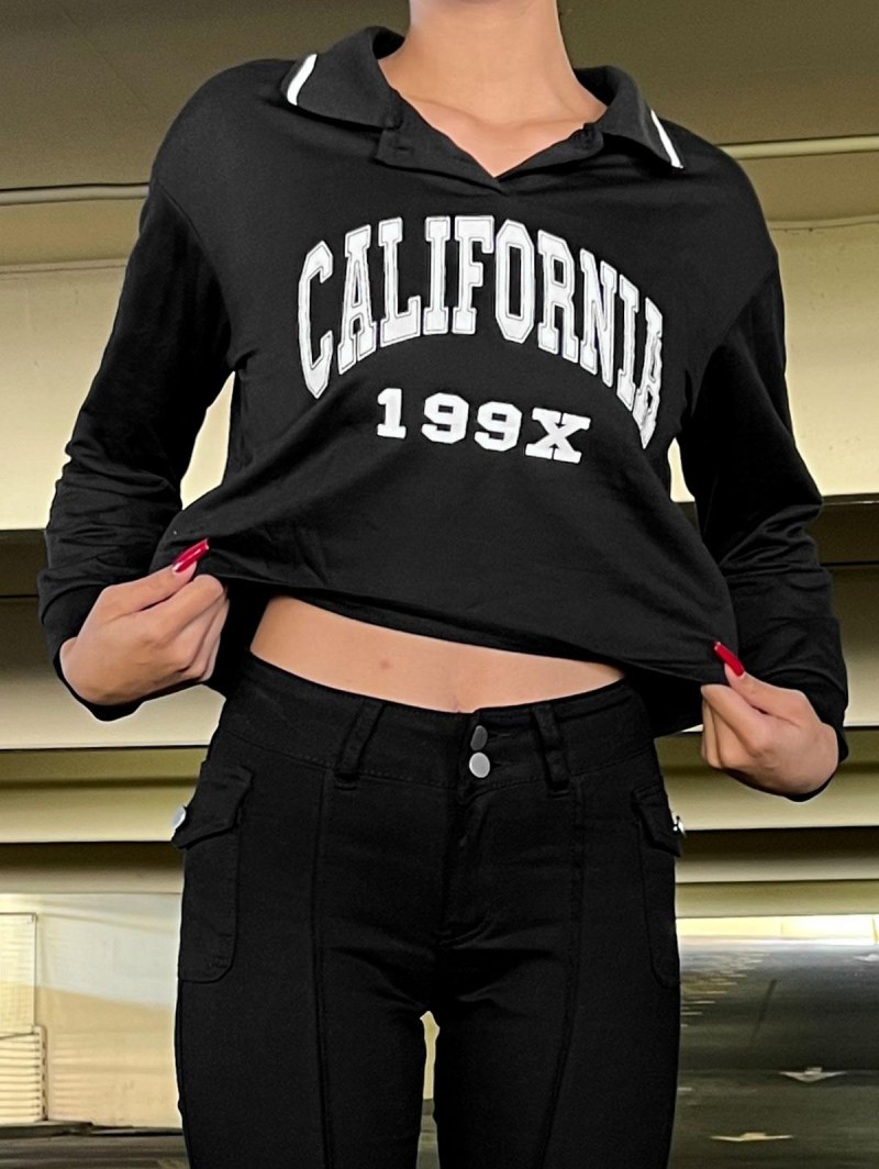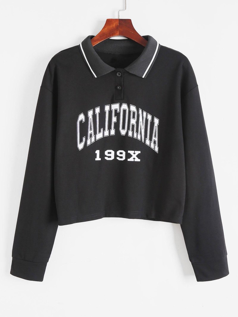 Turn-down Collar Buttoned Graphic Preppy Cropped Sweatshirt